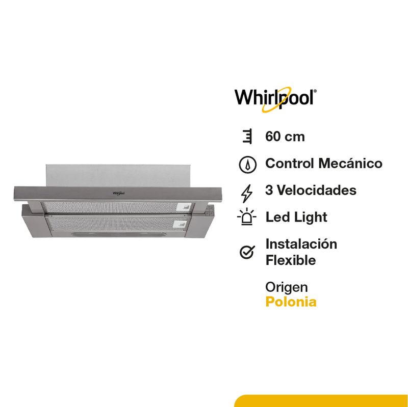 ElectrodomésticosCampanasCampana Whirlpool 60cm Inox Telescopica