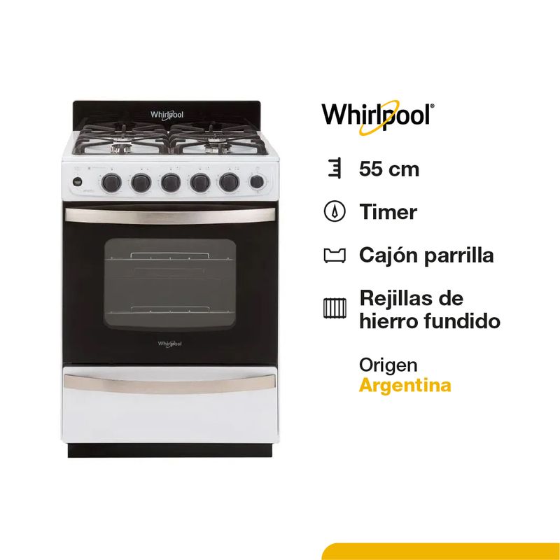 Cocina Whirlpool Multigas 56 CM Blanca