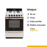 Cocina Whirlpool Multigas 56 CM Blanca