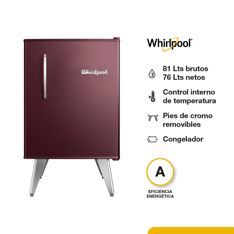 Heladera Compacta Whirlpool Retro Marsala Wine 76 Lts.