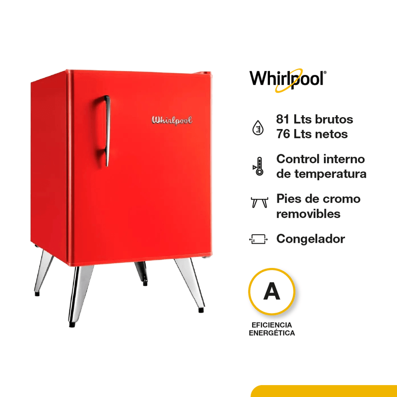 ElectrodomésticosCompactasHeladera Whirlpool Retro 76 Lts Roja