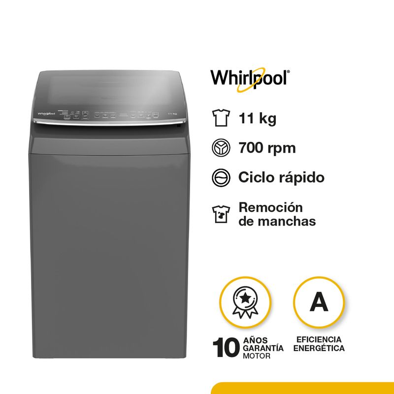 ElectrodomésticosLavarropasLavarropas Whirlpool Carga Superior 11KG Gris Oscuro